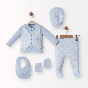 Erkek Bebek 0-3 AY Baby Kıng Kutulu 5Li Pamuklu Hastane Çıkış Seti